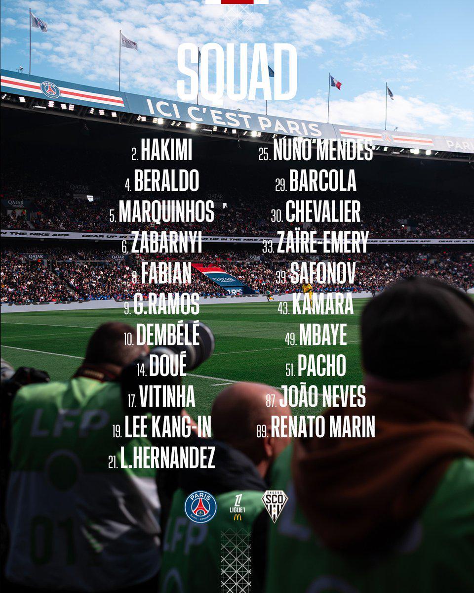 巴黎战昂热大名单:若昂-内维斯回归,KK、多纳鲁马缺席